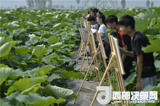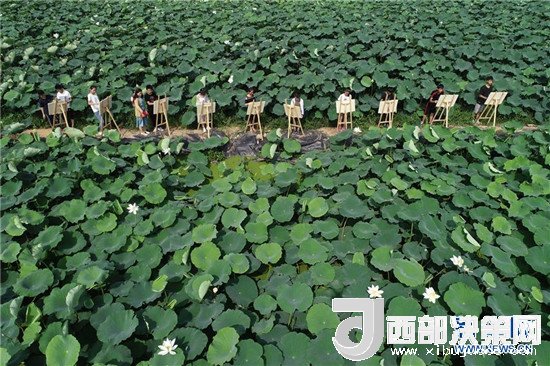 7月24日,一群學(xué)生在隆堯縣東良鎮(zhèn)澤畔村荷塘邊寫生。