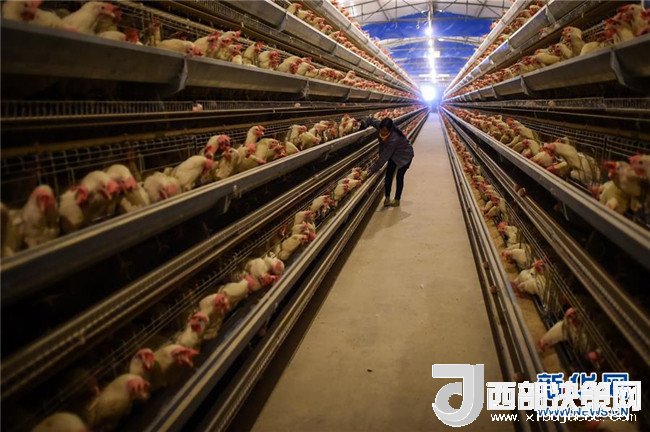 在貴州畢節(jié)市七星關區(qū)五里坪村,當?shù)剞r(nóng)戶在一個屬于精準扶貧項目的養(yǎng)雞場內(nèi)工作(2015年11月15日攝)。新華社記者 歐東衢 攝