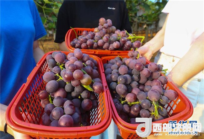 近日,江西省樟樹市現(xiàn)代農(nóng)業(yè)科技示范園內(nèi)的葡萄進(jìn)入采摘期,吸引眾多游客前來觀光、采摘。近年來,該農(nóng)業(yè)園著力打造農(nóng)業(yè)科技示范與觀光度假為一體的旅游休閑項目,推動農(nóng)業(yè)、旅游業(yè)雙發(fā)展。