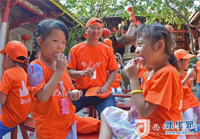 為進一步豐富廣大外來務工人員子女的暑期生活,福建省泉州市泉港區(qū)先后邀請轄區(qū)130多戶外來務工人員家庭,一起參觀當?shù)胤逦补懦?,體驗海絲文化。新華社發(fā)(林弘梫 攝)