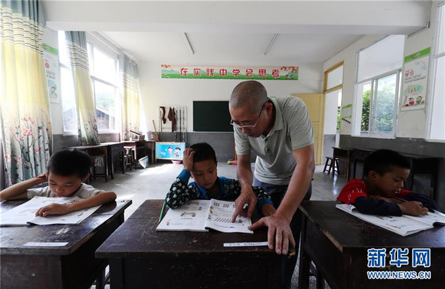 9月3日,重慶市黔江區(qū)石家鎮(zhèn)滲壩小學老師冉景旭給3名學生上課。