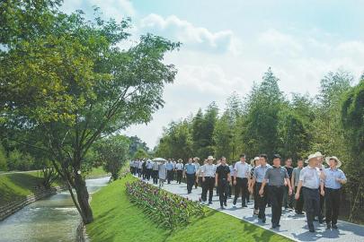 9月3日,與會(huì)代表在郫都區(qū)“綠色戰(zhàn)旗、幸福安唐”鄉(xiāng)村振興博覽園參觀考察。 楊樹攝(視覺四川)