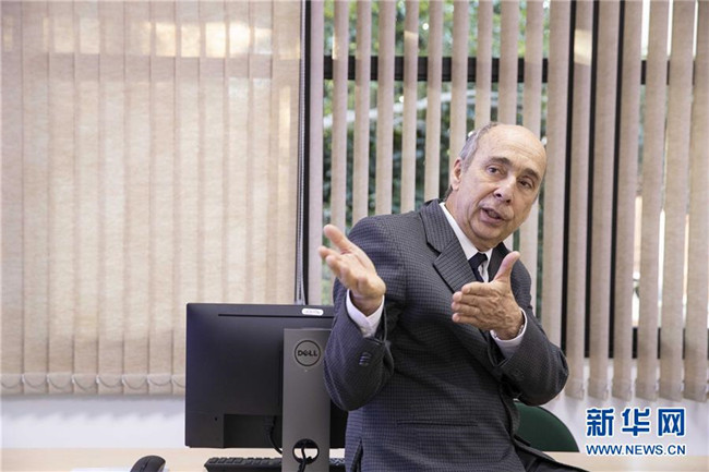 8月30日,在巴西圣若澤杜斯坎普斯,中國-巴西空間天氣聯(lián)合實(shí)驗室巴方運(yùn)營負(fù)責(zé)人若阿金·科斯塔在介紹實(shí)驗室運(yùn)轉(zhuǎn)情況。 新華社記者 李明 攝