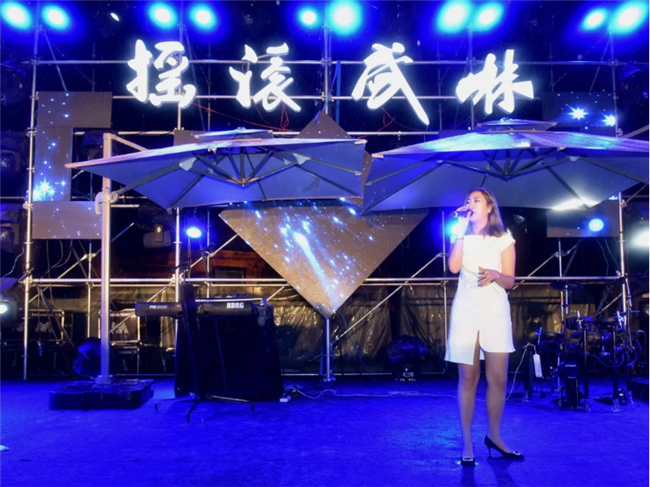 星空音樂趴于當(dāng)晚18時30分正式開始,在層巒聳翠中,浩瀚星辰下,由原創(chuàng)搖滾實效樂隊帶來的動感音樂瞬間點燃全場,華旅集團營銷中心各位美女為大家?guī)韯痈鞋F(xiàn)代舞,馬超武術(shù)表演隊伍更是展現(xiàn)了劍、九節(jié)鞭、棍、拳的華夏男兒力量之美,DJ、MC電音律動,現(xiàn)場聽眾更是融入其中,服裝上的熒光粉在夜空中也化作點點星光,與天、地、舞臺融為一體,撩人電音牽手活力運動,燃爆初秋的第一把火!這是一個聞所未聞的華山“武林”。