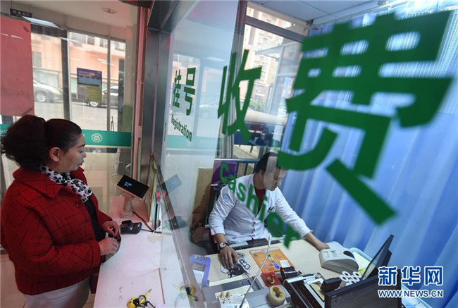 2017年4月8日,北京“醫(yī)藥分開”綜合改革正式在3600余家醫(yī)療機(jī)構(gòu)實(shí)施。這是市民在北京東花市社區(qū)衛(wèi)生服務(wù)中心掛號交錢。  新華社記者 羅曉光 攝