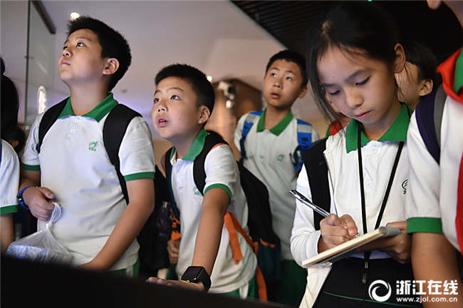 2018年10月9日是杭州市學(xué)軍小學(xué)秋游的日子,畢業(yè)班的學(xué)生在出發(fā)前做足了功課,人人帶著課題去學(xué)習(xí)杭州的歷史文化知識,秋游成了走出校門的探索之旅。(浙江在線記者 潘海松 攝)