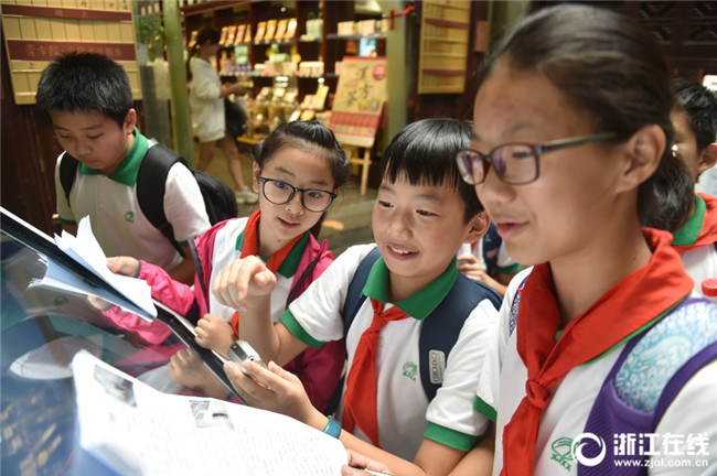 一個課題小組在清河坊方回春堂了解國醫(yī)國藥文化。