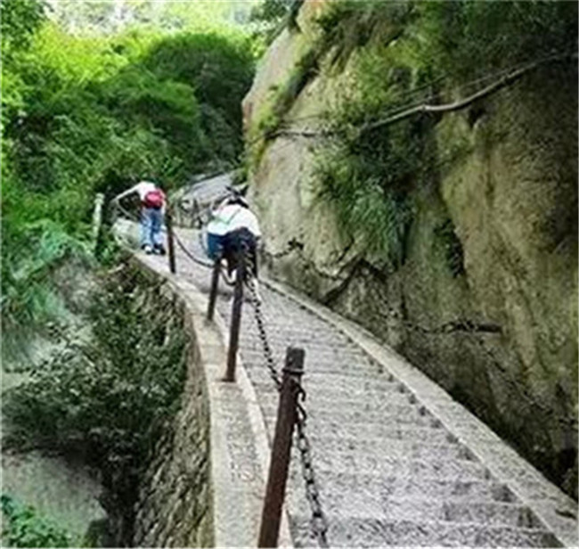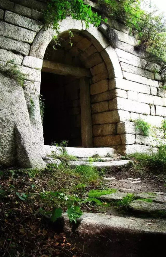 進(jìn)石坊為竹園,上達(dá)山門,門內(nèi)有龍井,其水澄澈甘甜。古時井畔有廟宇三間,供太上老君,現(xiàn)已廢棄年久。廟四周有紫微洞、三元洞、斗姥洞、開山洞、金天洞、祖師洞等十余處,以紫微洞面積最大,稱華山第一洞。坪上北峰巔有巨石,石頂平坦,人稱拜斗臺,相傳是毛女玉姜和清時道士王常月等朝拜北斗的地方。東崖有巨石,形如臥虎,人稱臥虎石。