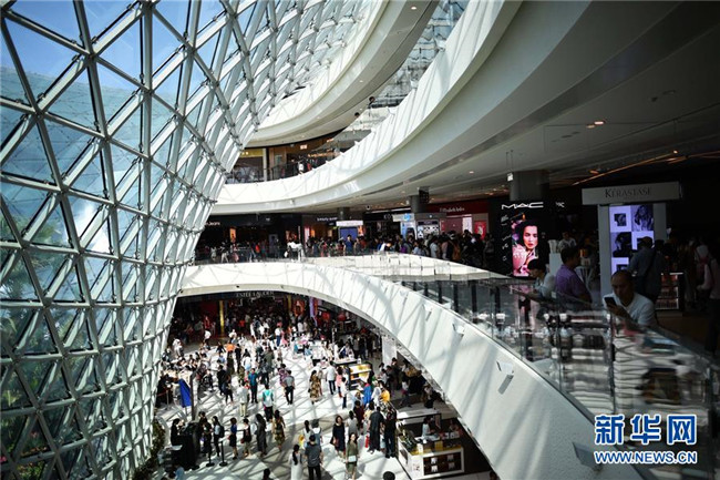 顧客在海南三亞海棠灣免稅店內(nèi)游覽、購(gòu)物(2月18日攝)。新華社記者 郭程 攝