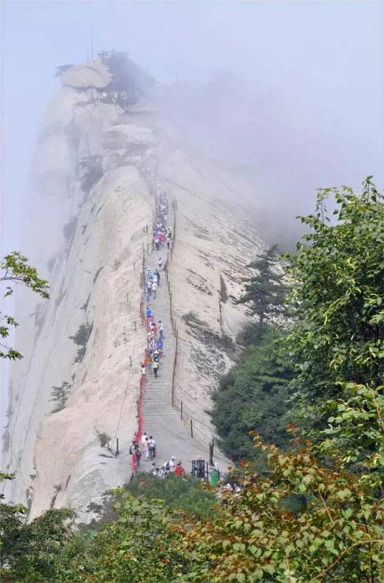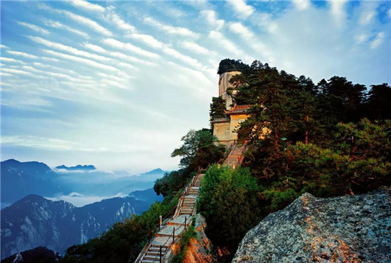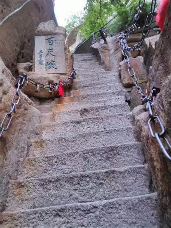 華山的登山道路自古以來以奇險著稱,而且只有一條道路,別處不能通達,可謂天下奇觀。“自古華山一條路”的奇特景觀,造就和形成了華山特出的道路景觀文化。這條道路越石潤、穿石峽臨峭壁、就危崖,奇絕壯美,峻險峭麗,景色各異,各顯其奇,形成了異景紛呈的脊嶺道路、巖隙道路、絕壁道路、凌空棧道等多種道路景觀,加之人們給這些道路上演繹了許多美麗的傳說故事,使華山的道路充滿了濃郁的文化氛圍。