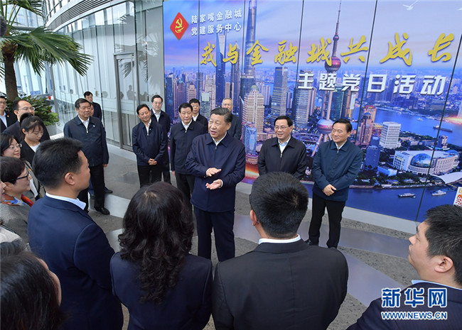 這是習(xí)近平在位于上海市浦東新區(qū)陸家嘴的上海中心大廈,視察陸家嘴金融城黨建服務(wù)中心,了解城市樓宇黨建工作情況。 新華社記者 李濤 攝