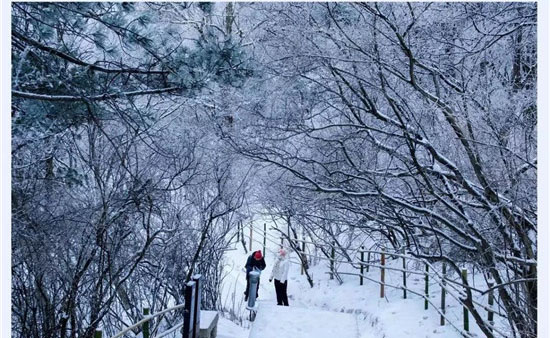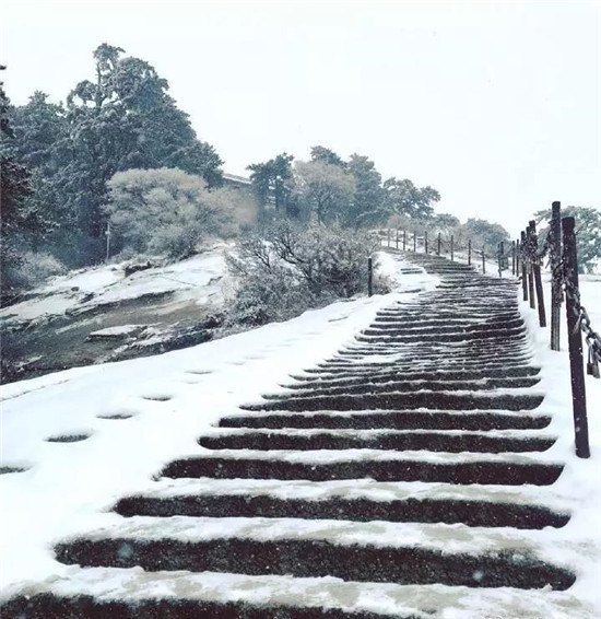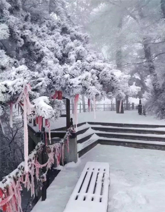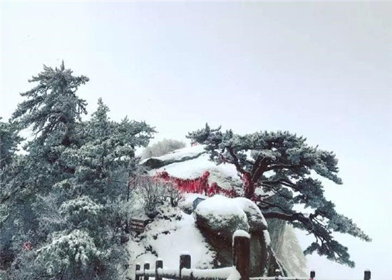 冬季的華山少了夏季的喧鬧,白雪與松檜、陽光與山石就是它最美的景象。每年12月至次年3月是華山的雪季,而前兩天華山已經(jīng)提前下過雪了,整個山體被白雪覆蓋,樹木、巖石、道觀上都披上一層厚厚的棉衣。走進(jìn)華山仿佛是走進(jìn)了一個純白的圣潔之地,白色的花崗巖、白色的雪花、白色的樹木……  在華山,白色也是如此的浪漫唯美。