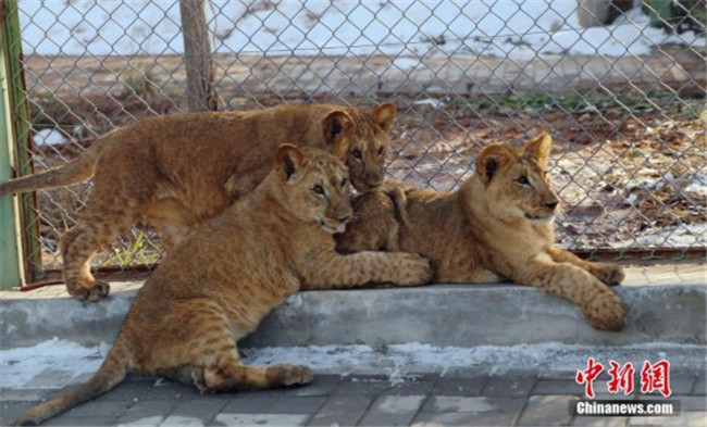 11月13日,西寧,小非洲獅曬太陽。近日,青藏高原野生動(dòng)物園對(duì)外表示,該園繁育成活三只非洲獅。據(jù)了解,三只非洲獅寶分別出生于2018年5月9日和5月15日,均為雌性,其中一對(duì)為雙胞胎,目前三只“獅寶”已能自行捕食,體重均達(dá)到20公斤左右。此次是該物種在青藏高原誕生并育活的最好“成績(jī)”,就目前觀察情況來看,此物種已適應(yīng)青藏高原氣候。中新社記者 馬銘言 攝