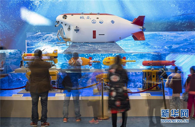 11月18日,觀眾在觀看“蛟龍”號載人潛水器等模型(慢門拍攝)。“偉大的變革——慶祝改革開放40周年大型展覽”11月13日在國家博物館隆重開幕。自開幕以來,展覽吸引了眾多參觀者。新華社記者 才揚 攝