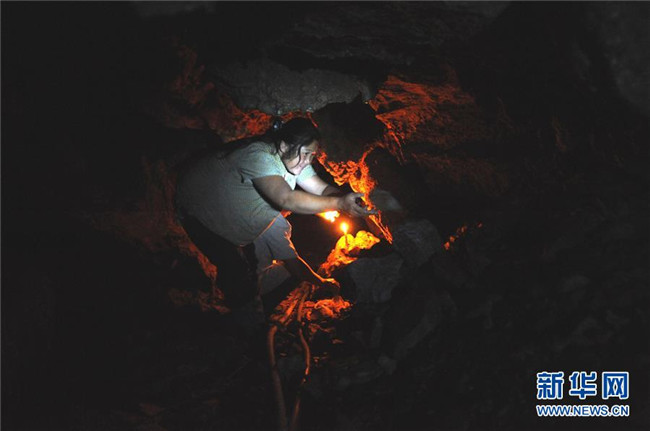 貴州省羅甸縣麻懷村村支書鄧迎香帶領群眾挖山鑿洞(資料照片)。新華社發(fā)(郭一江 攝)