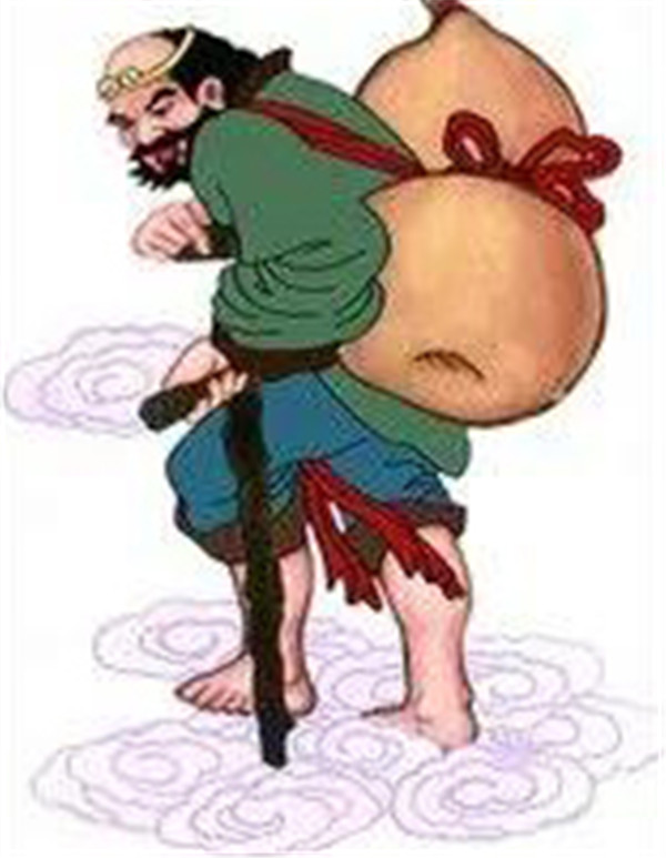 李玄急急叩頭,拜過尊師,高興非常。老君給他一個煉丹燒火用的鐵鏟,叫他拄著拐杖行路。從此,李玄就拄著這根鐵拐,到處濟(jì)世活人,拯厄救難,因?yàn)樾绽?,又拄著個鐵拐,人們就親切地稱他“李鐵拐”。
