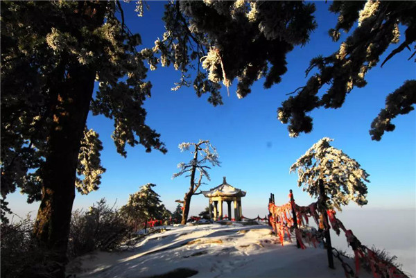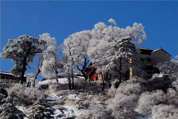 我如一尊玉雕,石頭般固坐著望著腳下浩瀚的雪中松林,情不自禁地吟唱出一首《華山雪松》:雪的夢境一一松的綠影,匯成清純神圣的透明的生命。輕揚(yáng)的音符一一凝固的畫卷,織出美麗而多彩的甜蜜愛情。華山的雪,是跳動的樂之精靈;華山的松,是洋溢著色彩的弦之翅膀。雪落松間,深情而浪漫,冬天的歌搖著醉意與醇香,似鳥一樣,在云中飛翔!