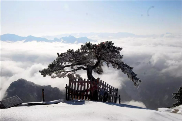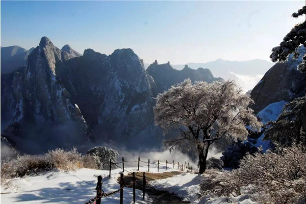 雪落華山,圣潔的雪花把華山妝扮得分外妖嬈嫵媚,平日陡峭的巖石,象穿著潔白的羽衣,宛若天仙般亭亭玉立于峰頭路旁,似向游人拂疑,微笑致意,最讓為之從心里震顏起敬的是,華山雪中松樹的雄姿與風(fēng)情。