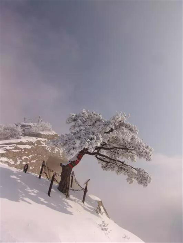 塵世的喧器與愁憂都讓雪裹去了,唯獨(dú)給記憶留下了一片雪一樣潔凈的空白,揮不去華山雪中的松樹留在我腦海中的形象。那是千百年來情澆情鑄的精靈。