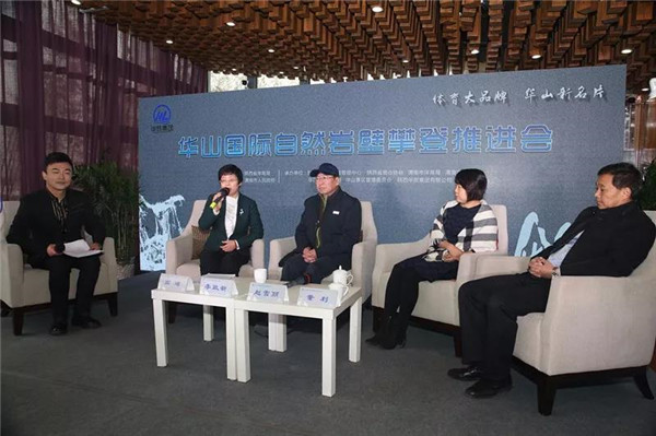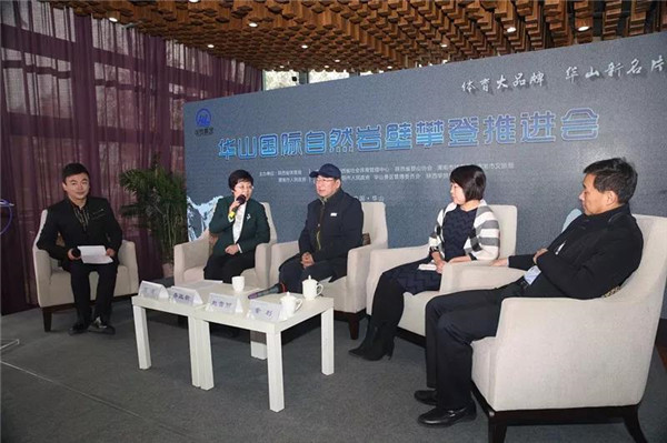會上,渭南市政府副秘書長李曉京致歡迎詞,集團(tuán)副總經(jīng)理趙江鋒對華山及周邊旅游資源進(jìn)行了介紹,攀巖名將、洲際定線員邱洪樹介紹了華山巖壁考察情況,來自英國的攀巖運動員Eli Hardie Howes向與會人員分享了華山巖壁攀登的感受。