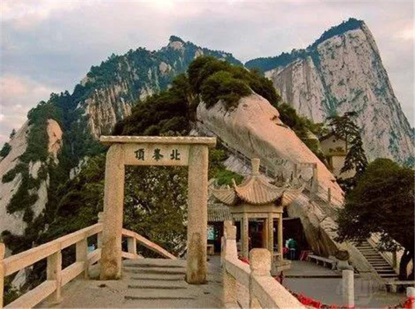 北峰海拔1614米,為華山主峰之一,因位置居北得名。北峰四面懸絕,上冠景云,下通地脈,巍然獨秀,有若云臺,因此又名云臺峰。唐李白《西岳云臺歌送丹丘子》詩曾寫到:“三峰卻立如欲摧,翠崖丹谷高掌。白帝金精運元氣,石作蓮花云作臺。”