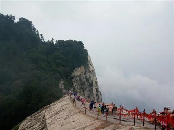 由于華山太險,所以唐代以前很少有人登臨。歷代君王祭西岳,都是在山下西岳廟中舉行大典?!妒酚洝份d,黃帝、虞舜都曾到華山巡狩。據(jù)記載,秦昭王時命工匠施鉤搭梯攀上華山。