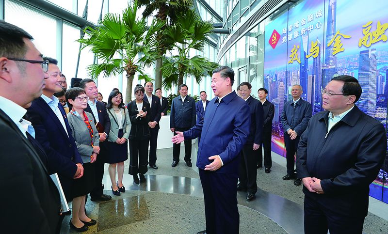 2018年11月6日至7日,中共中央總書記、國家主席、中央軍委主席習(xí)近平在上??疾臁_@是6日上午,習(xí)近平在上海中心大廈22層的陸家嘴金融城黨建服務(wù)中心,同正在聯(lián)合開展主題黨日活動的企業(yè)黨員親切交談。 新華社記者 謝環(huán)馳/攝