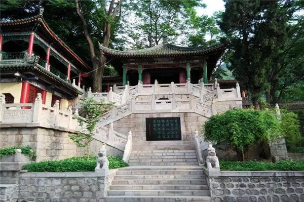 玉泉院的整體布局順應(yīng)了中國傳統(tǒng)的園林建筑布局風(fēng)格,“對稱美”的審美觀體現(xiàn)得十分鮮明,整體格局十分嚴(yán)道。正門居中,兩側(cè)回廊,西北東北兩角各一亭。西院面東有七真殿,東院面西就有華岳圣母殿。西有山蘇亭、希夷睡洞,東有運(yùn)氣亭、呂祖洞。正殿直對大門,用墻分割為一單體院落,拱門與前院相通、從視覺心理上給人以靜止、穩(wěn)重和居塵出塵之感,體現(xiàn)了道家中規(guī)中矩的“無為”思想和追求完善的審美情趣。
