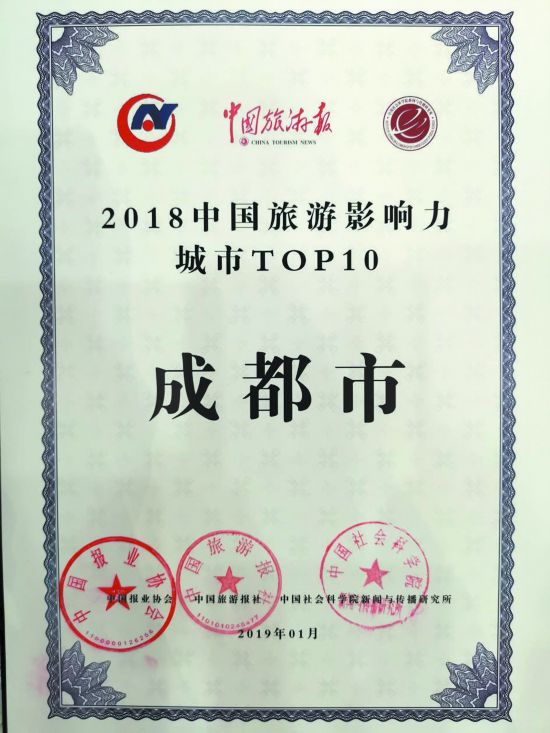 經(jīng)文化和旅游部批準(zhǔn),1月23日,以“新時(shí)代新視野新傳播新動(dòng)能”為主題的2019中國旅游產(chǎn)業(yè)發(fā)展年會(huì)在京舉辦。文化和旅游部黨組成員、故宮博物院院長單霽翔作了《文旅融合的故宮實(shí)踐》主題演講,文化和旅游部黨組成員王曉峰作主旨講話,人民日?qǐng)?bào)社原副社長、中國報(bào)業(yè)協(xié)會(huì)理事長張建星致辭。在2018年中國旅游產(chǎn)業(yè)影響力風(fēng)云榜的評(píng)選中,成都入選“2018中國旅游影響力城市TOP10”,一同入選的還有北京、杭州、蘇州、廣州等城市。此外,都江堰市入選“2018中國旅游影響力區(qū)縣TOP10”。