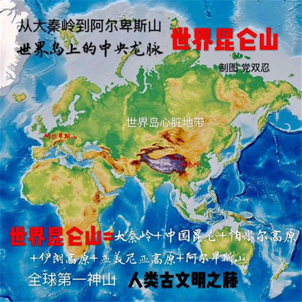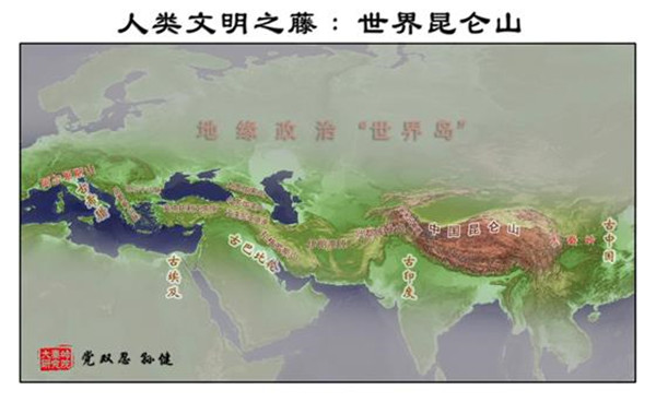 按照中國傳統(tǒng)的龍脈理論,“亞歐大陸的脊梁”也是“世界島”中央龍脈所在。由于人類古文明,包括古華夏、古印度、古波斯、古巴比倫,古希臘,皆源自“亞歐大陸脊梁”,所以也可稱其為“世界昆侖山”。著名的“絲稠之路”,也是從中國大秦嶺到歐洲阿爾卑斯山之路,也可稱之為“世界昆侖山之路”。過去,德國人首先“發(fā)現”了古老的“絲綢之路”。進入21世紀,英國人又率先以“絲綢之路”的視角,重新著述了“一部全新的人類史”。今天,中國人以“亞歐大陸的脊梁”為視野,將“世界島”連為一體,著述“一帶一路”,著述“大秦嶺到阿爾卑斯山之路”,著述“世界昆侖山之路”,也算是一個世界“地理新發(fā)現”。