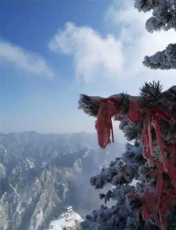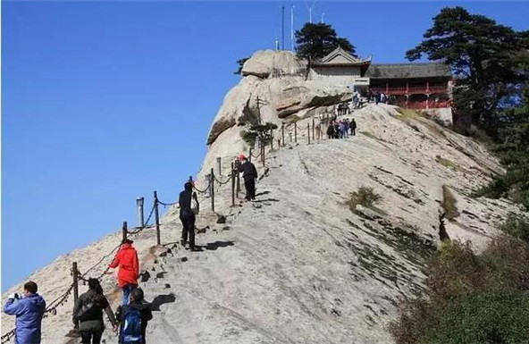 而被大家熟悉的長空棧道,則位于華山南峰東側(cè)山腰,是華山派第一代宗師元代高道賀志真為遠(yuǎn)離塵世靜修成仙,在萬仞絕壁上鑲嵌石釘搭木椽而筑。去過華山的朋友,大部分肯定體驗(yàn)過華山長空棧道,在千仞絕壁之上,左邊是大山,而右邊就是萬丈深淵,想要通過僅僅是靠著腳下這一寬30多公分的棧道,周圍無任何欄桿,但令人興慶的是,在崖上還有釘?shù)睦喂痰蔫F索可以抓住,讓探險(xiǎn)者可以稍微放松一點(diǎn)心情。