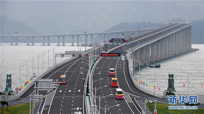 港珠澳大橋正式通車(chē)運(yùn)營(yíng)(2018年10月24日攝)。新華社記者 梁旭 攝