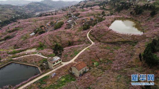 3月21日,桃花在成都龍泉驛區(qū)龍泉山盛開(無人機(jī)拍攝)。每年三月,有“桃花故里”之稱的四川省成都市龍泉驛區(qū)一片粉紅,數(shù)萬畝桃花如醉霞緋云般競相綻放,令人流連忘返。 新華社記者 張玉薇 攝