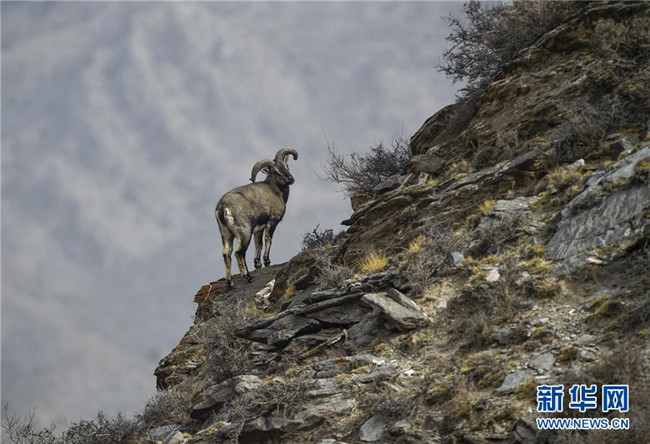 3月27日,在寧夏賀蘭山國家級自然保護(hù)區(qū),一只巖羊站立在峭壁邊。