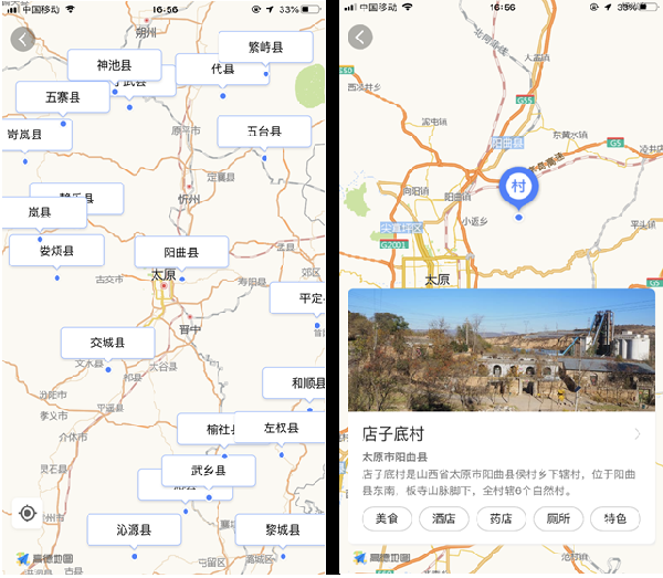 “山西省旅游扶貧地圖”首批上線100個(gè)旅游扶貧示范村,是山西省文化和旅游廳與高德地圖合作的第一步。隨后,第二批示范村(200個(gè))也將上線,實(shí)現(xiàn)示范村全覆蓋,更好地助力旅游扶貧,幫助貧困群眾增收脫貧。