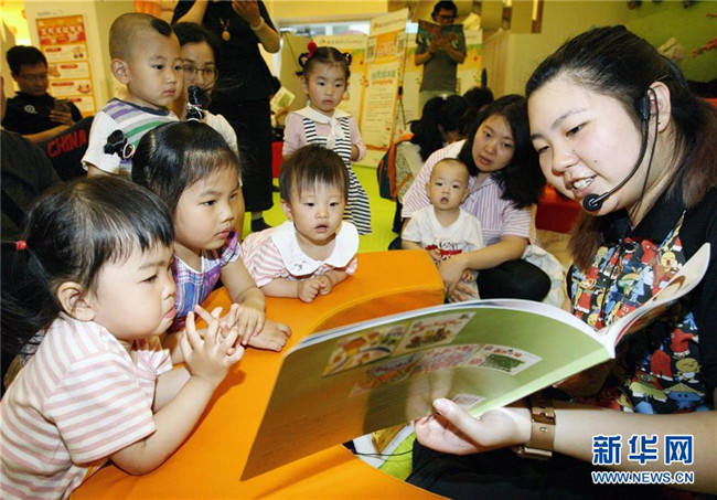 5月12日,工作人員為小朋友講述繪本故事。新華社記者 劉蓮芬 攝