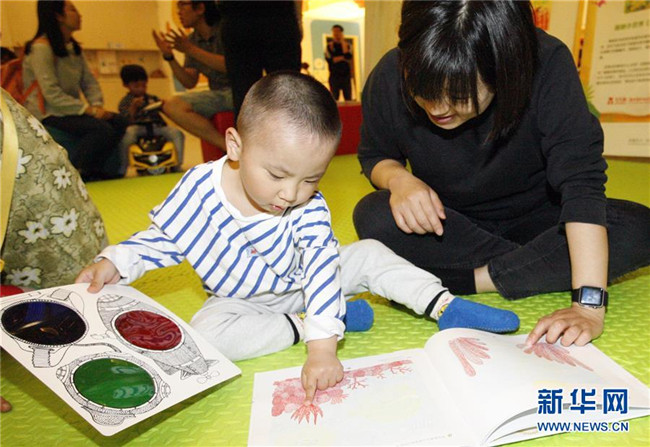 5月12日,一名孩子在家長陪伴下閱讀繪本。新華社記者 劉蓮芬 攝