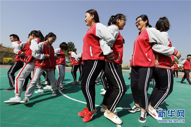 2019年高考臨近,多地高中開展形式多樣的減壓活動,幫助學(xué)生釋放緊張情緒,以平和、樂觀的心態(tài)迎接高考。新華社發(fā)(賈敏杰 攝)