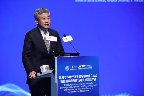 近日,在清華大學(xué)政府與市場(chǎng)經(jīng)濟(jì)學(xué)國(guó)際學(xué)會(huì)成立大會(huì)上,清華經(jīng)管學(xué)院院長(zhǎng)白重恩發(fā)表演講。