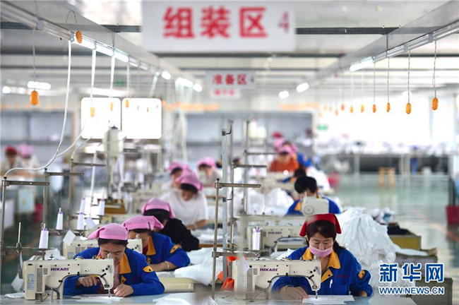 5月16日,鹽山縣慶云鎮(zhèn)村民在凱瑞斯服裝廠工作。該服裝廠總部位于雄安新區(qū)容城縣,為配合雄安新區(qū)產(chǎn)業(yè)轉(zhuǎn)型升級,于2018年初來到河北省鹽山縣開設(shè)工廠。 新華社記者 邢廣利 攝