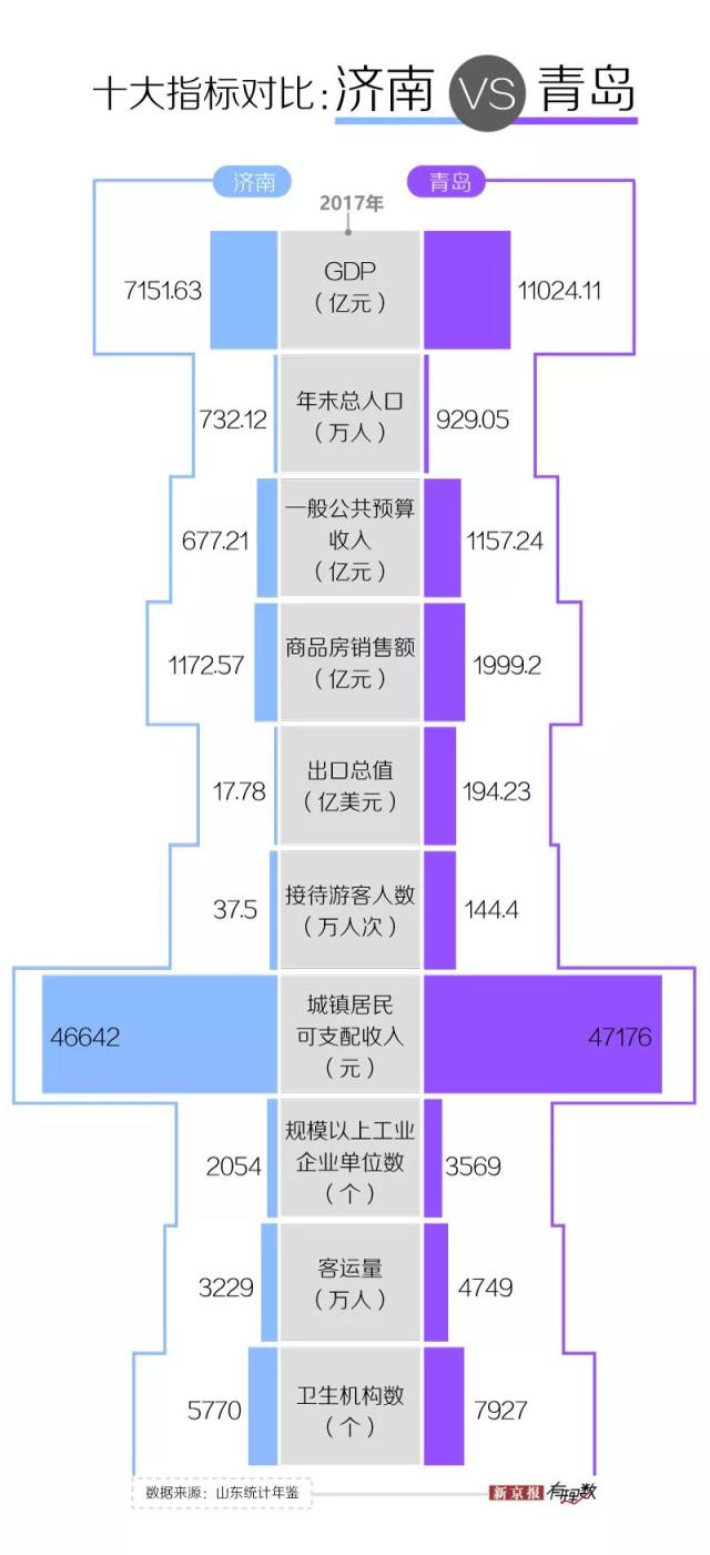 在全國(guó)范圍內(nèi)有 15 個(gè)副省級(jí)城市,濟(jì)南是其中 10 個(gè)省會(huì)城市之一,而青島是其中 5 個(gè)計(jì)劃單列市之一。所以,在區(qū)域的引領(lǐng)和帶頭作用上,山東省的這兩個(gè)城市是被國(guó)家寄予同樣厚望的。