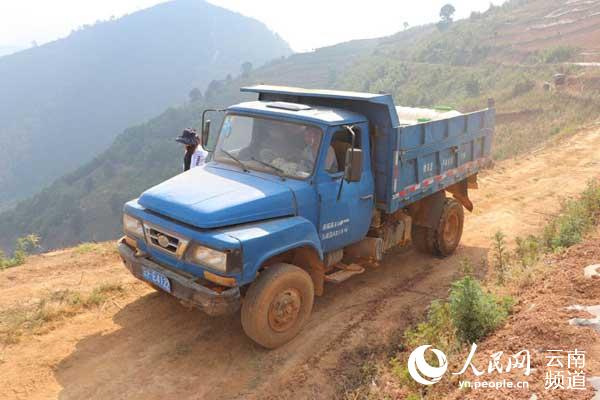 路同村委會送水的卡車