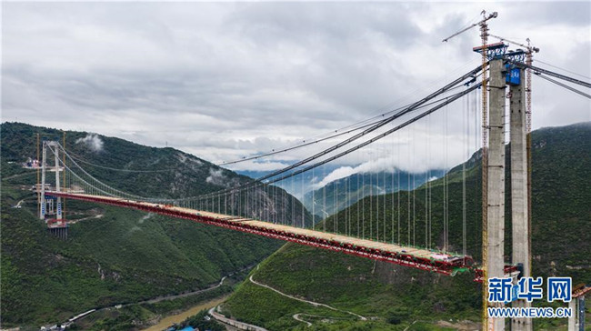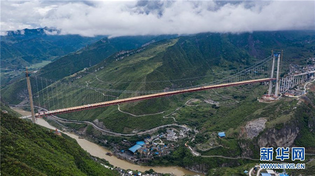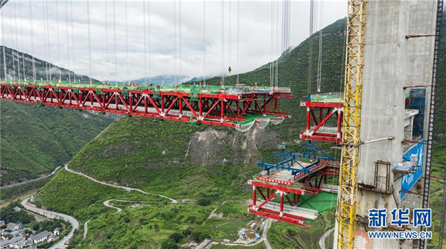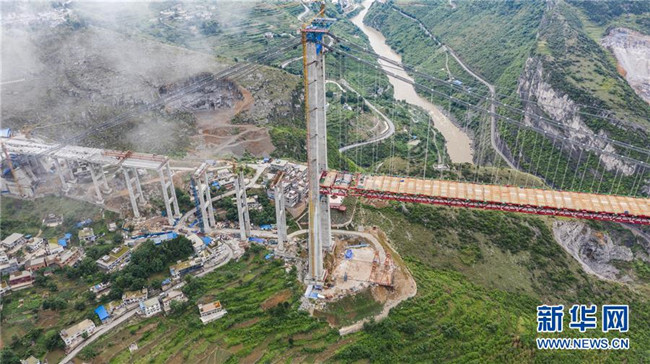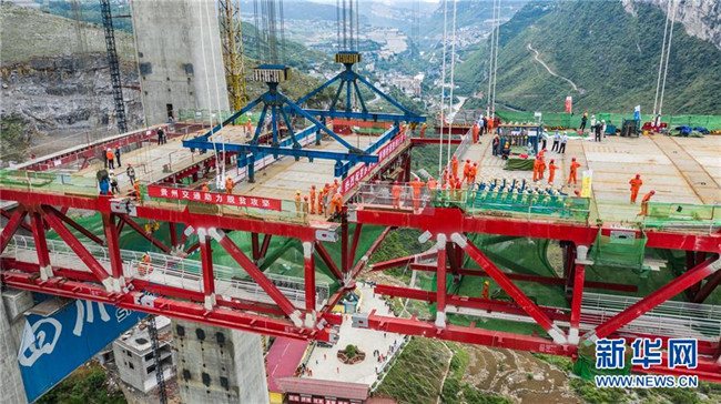 正在拼裝最后一片鋼桁梁的赤水河大橋(5月30日無人機拍攝)。新華社記者 陶亮 攝