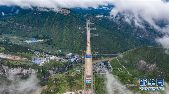 合龍中的江習(xí)古高速公路赤水河大橋(5月30日無人機拍攝)。 新華社記者 陶亮 攝