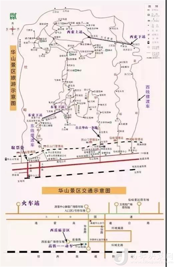 旅游大巴車:西安火車站對面的汽車站每日往返華山旅游大巴車,終點站為華山玉泉院,大約每30分鐘一班。