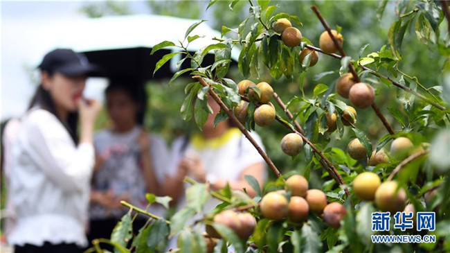 近日,廣西欽州市欽南區(qū)那麗鎮(zhèn)殿艮村種植的三華李進(jìn)入收獲季,吸引游客前來采摘。目前,殿艮村種植的“扶貧李園”共帶動16戶貧困戶實現(xiàn)增收。 新華社記者 張愛林 攝