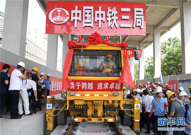 12日上午,京張高鐵最后一根鋼軌在中鐵三局WZ-500型無砟軌道鋪軌機牽引下準確落在清華園隧道的枕木上,精調之后,軌距誤差在正負1毫米之內。被譽為中國鐵路發(fā)展“集大成者”、智能高鐵示范工程的京張高鐵實現(xiàn)全線軌道貫通。