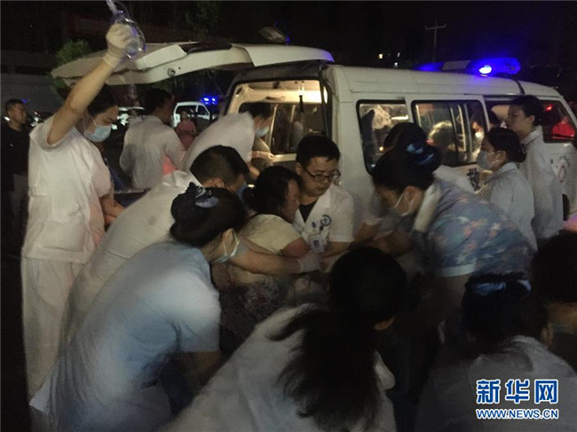 6月18日,在長寧縣中醫(yī)院,醫(yī)務(wù)人員救治地震中的傷者。新華社發(fā)(萬敏攝)