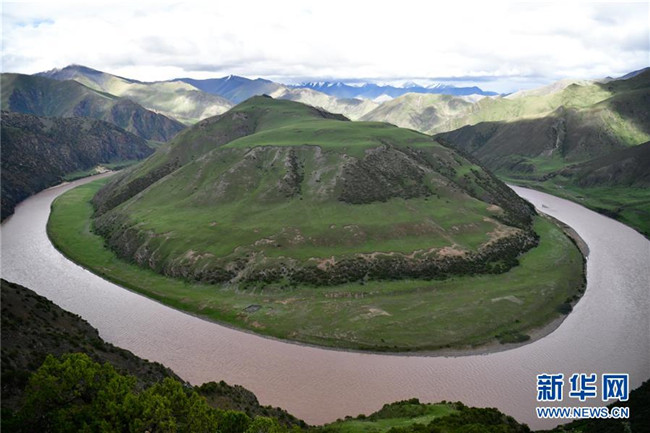 這是長(zhǎng)江源頭干流河段通天河大轉(zhuǎn)彎(6月20日攝)。新華社記者 張龍 攝