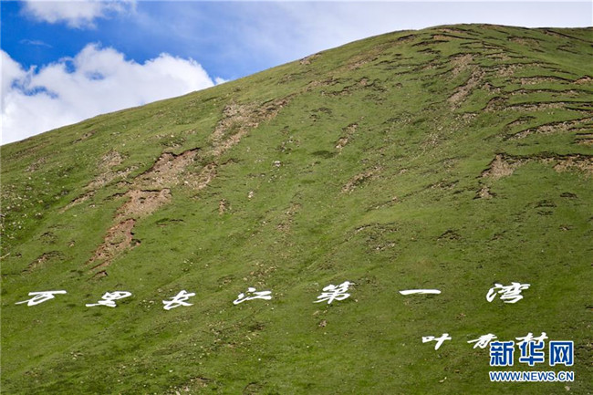這是葉青村附近山崗上“萬(wàn)里長(zhǎng)江第一灣”的標(biāo)識(shí)(6月20日攝)。新華社記者 張龍 攝